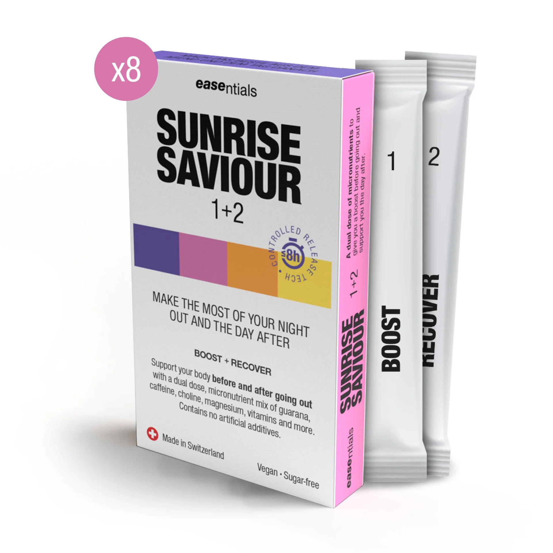 Naturligt näringstillskott före och efter en fest. Med en unik tvåstegsblandning av vitaminer och mineraler får du energi för kvällen och vaknar utvilad nästa morgon