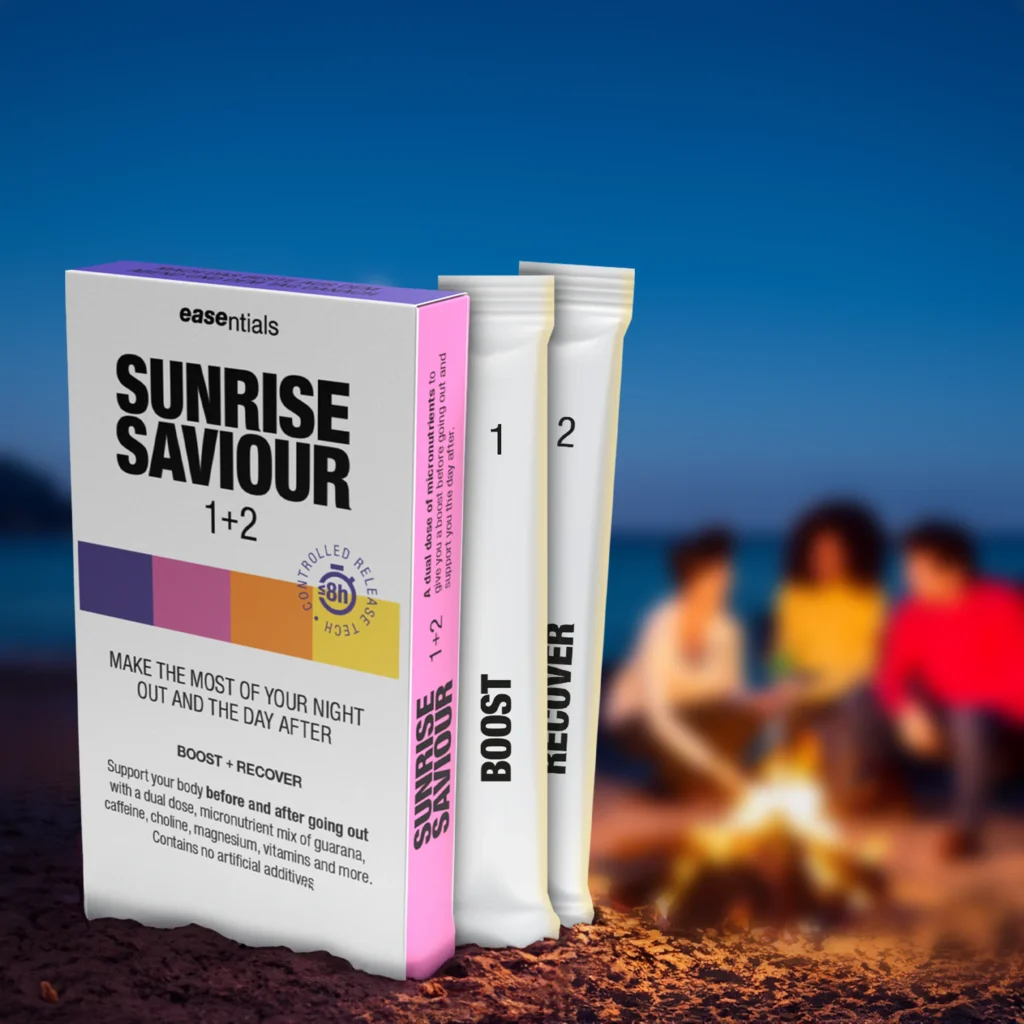 Naturligt näringstillskott före och efter en fest. Med en unik tvåstegsblandning av vitaminer och mineraler får du energi för kvällen och vaknar utvilad nästa morgon